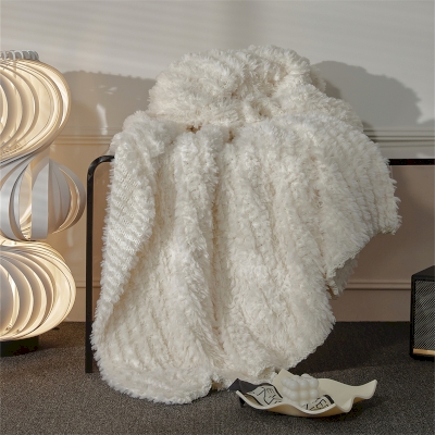 Discover the Afni Throw Blanket, crafted from faux fur, which perfectly combines warmth, comfort, and aesthetics. Its delicate texture evokes a space of tranquility and well-being, while its wool-like appearance adds a touch of rustic charm to your interior.