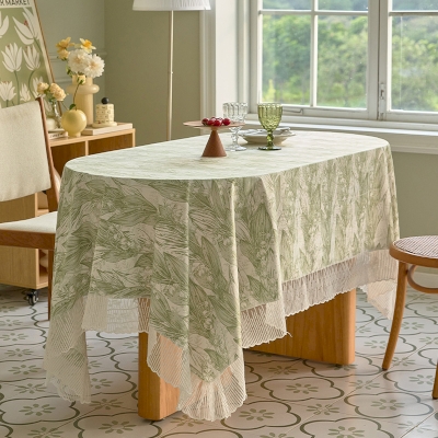 Lily of the Valley Lace Trim Tablecloth, Rectangle Tablecloths, Square Tablecloths, Green tablecloth